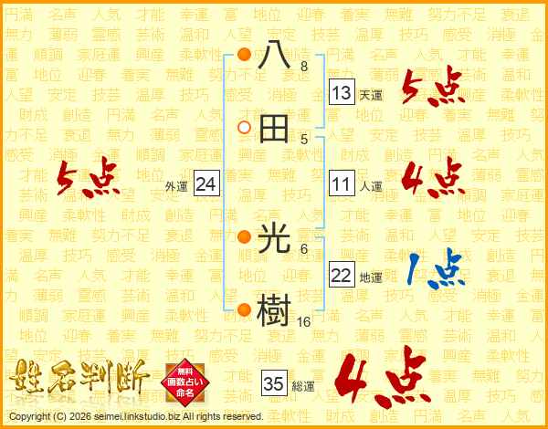 八田光樹さんの総運は35画の4点!