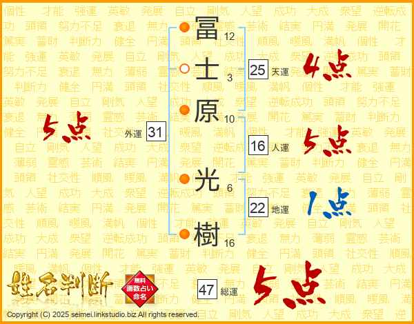 冨(12画)士(3画)原(10画) 光(6画)樹(16画)