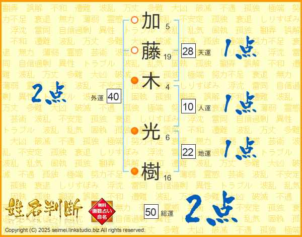 加(5画)藤(19画)木(4画) 光(6画)樹(16画)