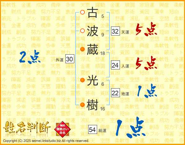 古波蔵光樹さんの総運は54画の1点!