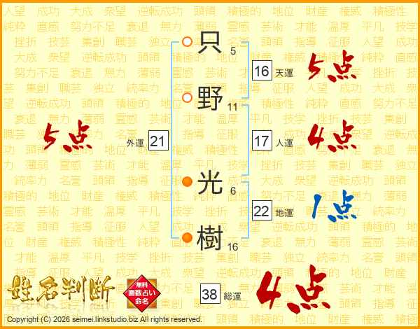 只野光樹さんの総運は38画の4点!