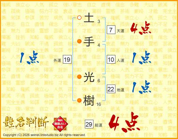 土手光樹さんの総運は29画の4点!