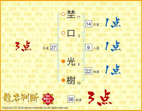 埜(11画)口(3画) 光(6画)樹(16画)