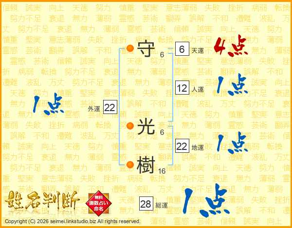 守光樹さんの総運は28画の1点!