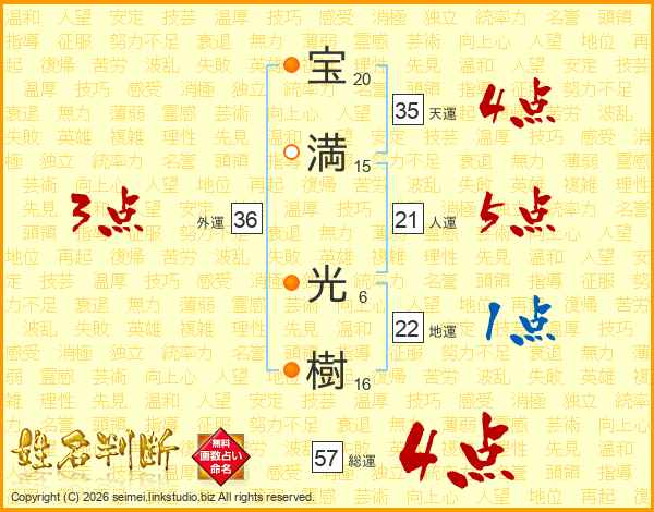 宝満光樹さんの総運は57画の4点!