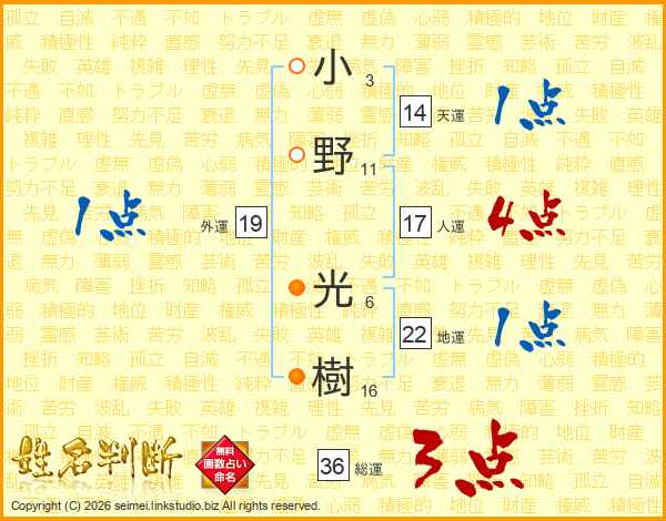 小野光樹さんの人運は17画の4点!