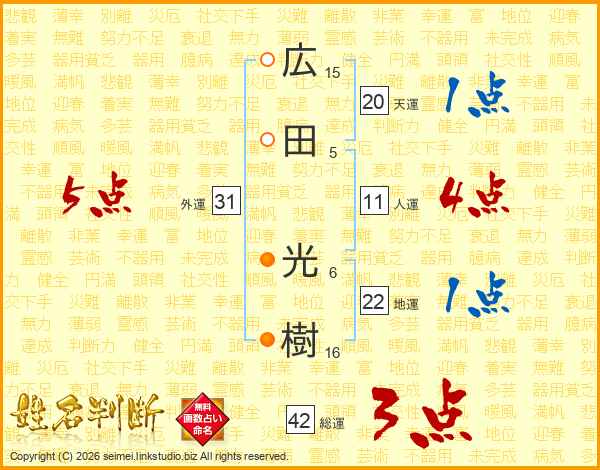 広田光樹さんの総運は42画の3点!