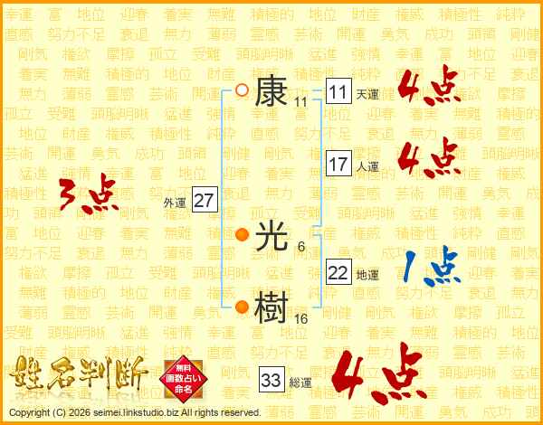 康光樹さんの総運は33画の4点!