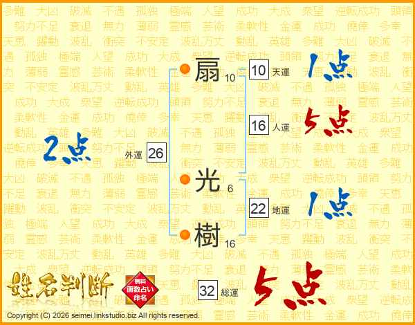 扇光樹さんの総運は32画の5点!
