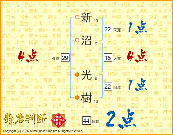 新沼光樹さんの総運は44画の2点!