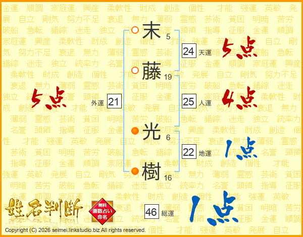 末藤光樹さんの総運は46画の1点!