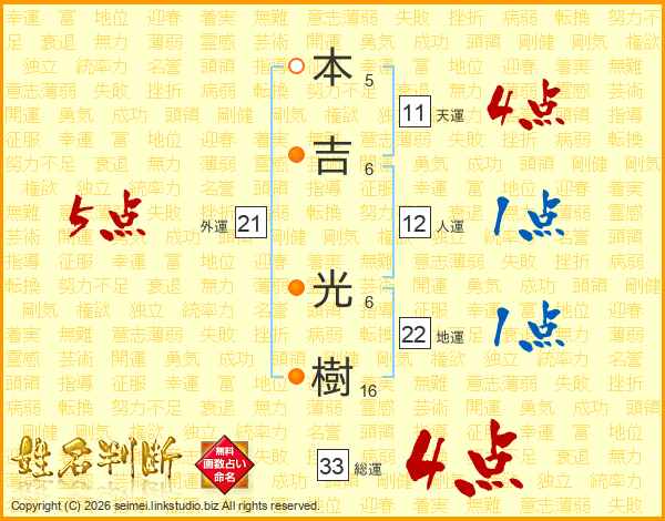 本吉光樹さんの総運は33画の4点!
