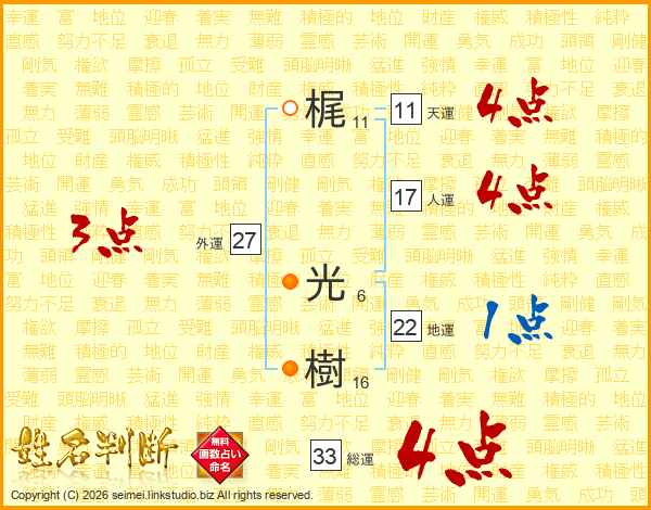 梶光樹さんの総運は33画の4点!
