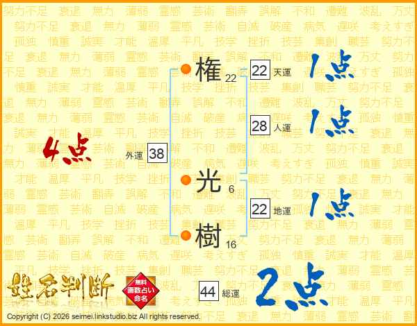 権光樹さんの総運は44画の2点!