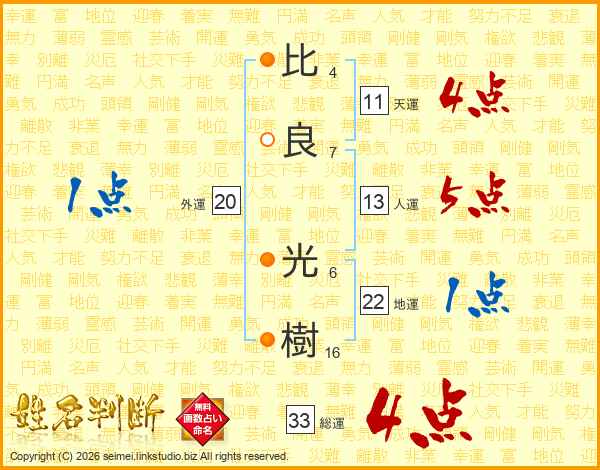 比良光樹さんの総運は33画の4点!
