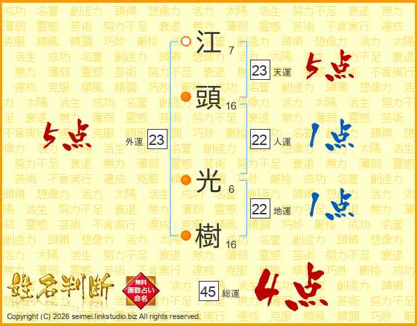 家系が持つ宿命的な運勢を表します。祖先から受け継いだ苗字ですので自分の力が及びません。家柄を象徴します。苗字の合計画数。