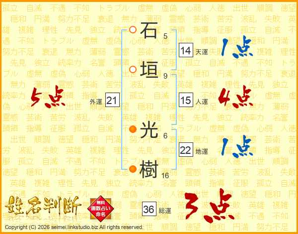 石垣光樹さんの総運は36画の3点!