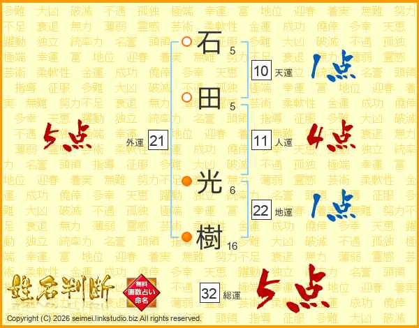 石田光樹さんの総運は32画の5点!