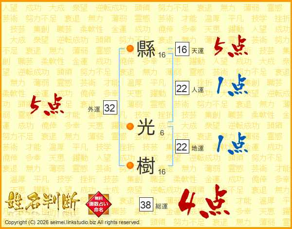 縣光樹さんの総運は38画の4点!