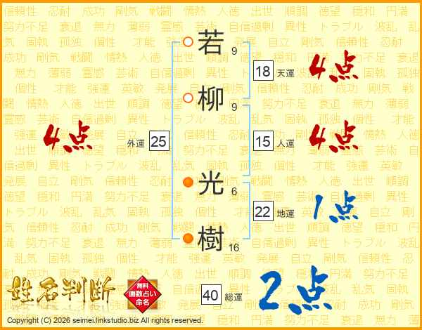 若柳光樹さんの総運は40画の2点!