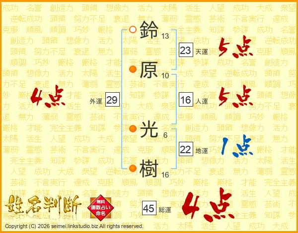 鈴原光樹さんの総運は45画の4点!