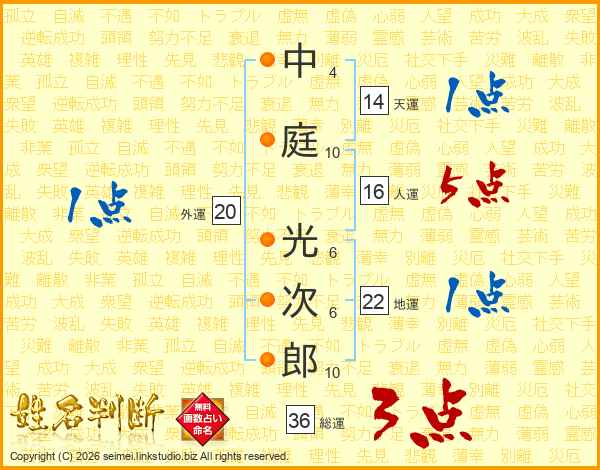 中庭光次郎さんの天運は14画の1点!