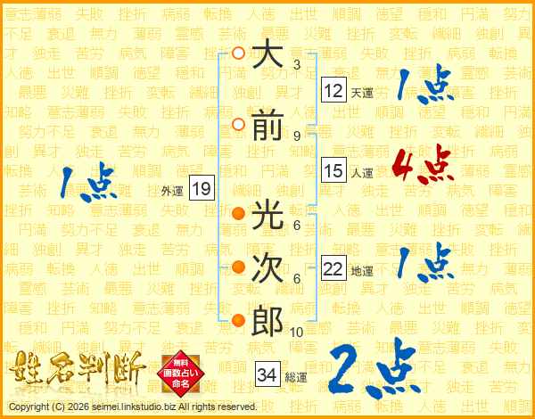 大前光次郎さんの総運は34画の2点!