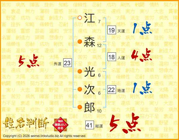 江森光次郎さんの総運は41画の5点!