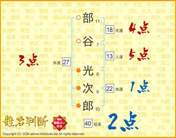 部(11画)谷(7画) 光(6画)次(6画)郎(10画)