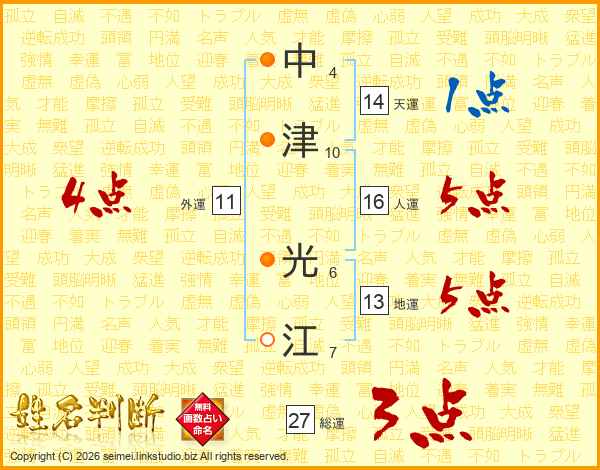 中津光江さんの天運は14画の1点!