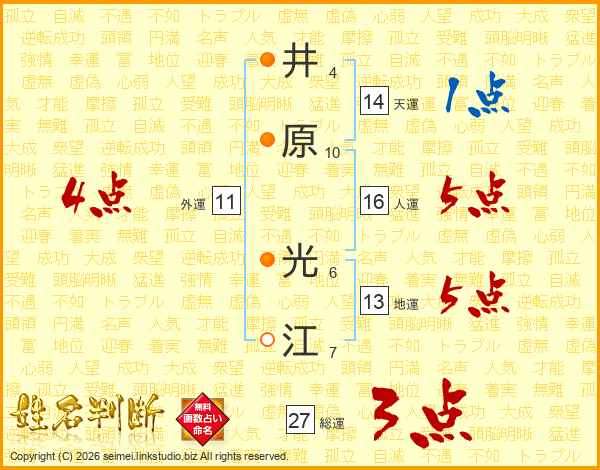 井(4画)原(10画) 光(6画)江(7画)