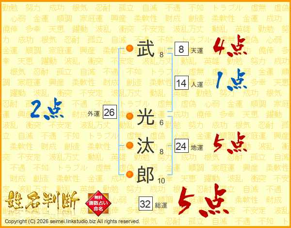 武光汰郎さんの総運は32画の5点!