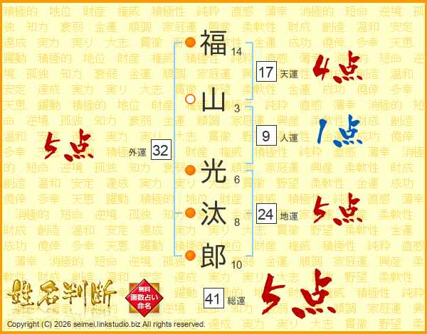 福山光汰郎さんの総運は41画の5点!