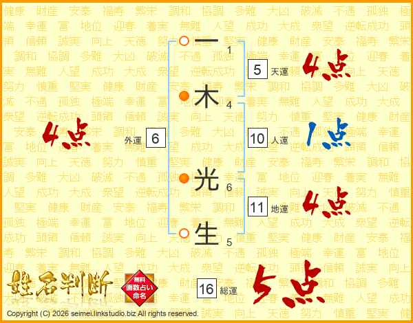 一木光生さんの総運は16画の5点!