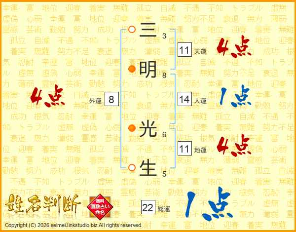 三明光生さんの地運は11画の4点!