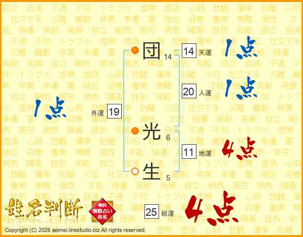 団光生さんの人運は20画の1点!