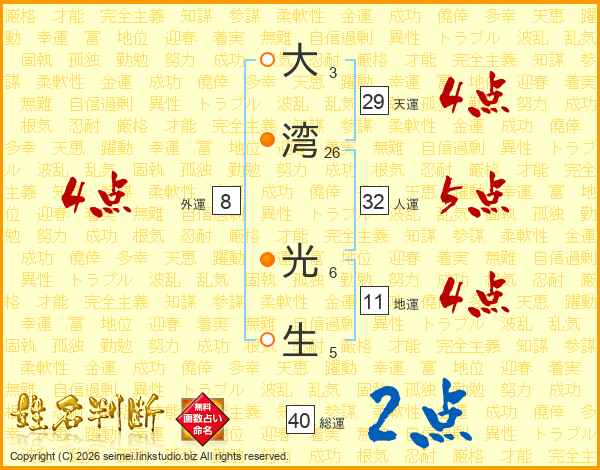 大湾光生さんの地運は11画の4点!