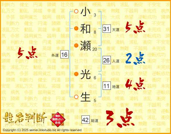 小(3画)和(8画)瀬(20画) 光(6画)生(5画)