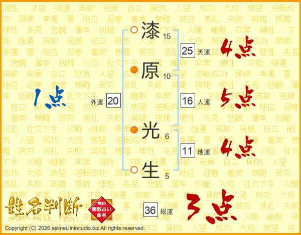 漆原光生さんの総運は36画の3点!