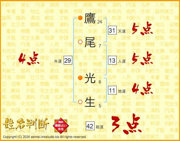 鷹尾光生さんの天運は31画の5点!