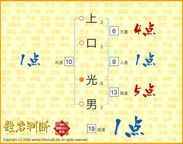 上口光男さんの総運は19画の1点!