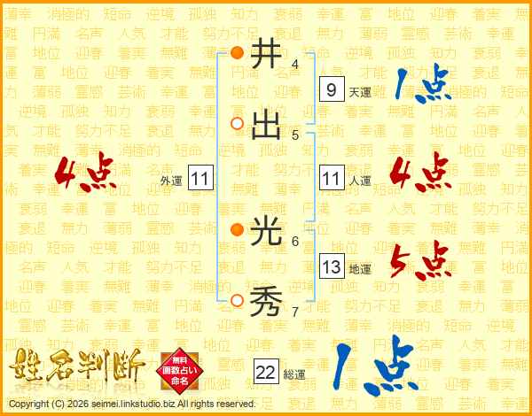 井(4画)出(5画) 光(6画)秀(7画)