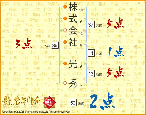 株式会社光秀さんの天運は37画の5点!
