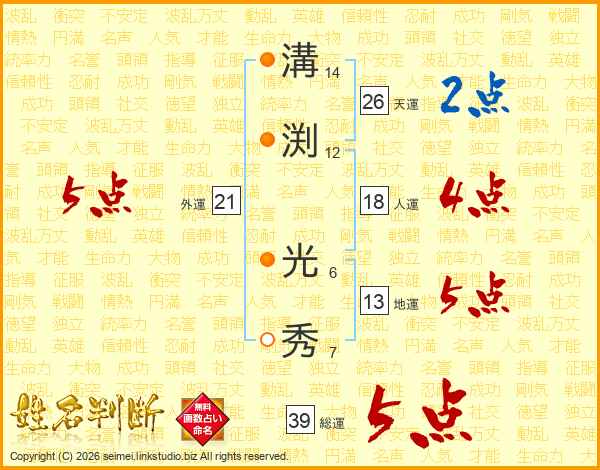 溝渕光秀さんの総運は39画の5点!