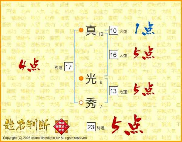 真光秀さんの総運は23画の5点!