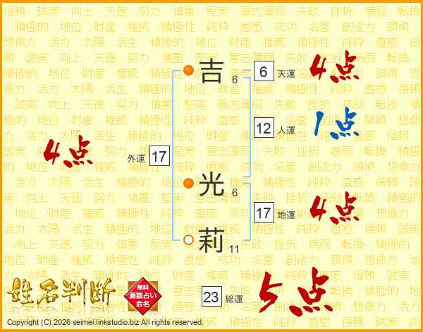 吉光莉さんの外運は17画の4点!