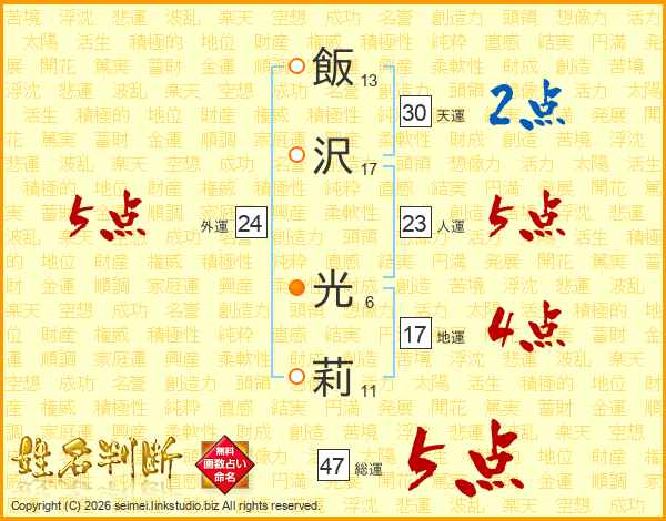 飯沢光莉さんの総運は47画の5点!