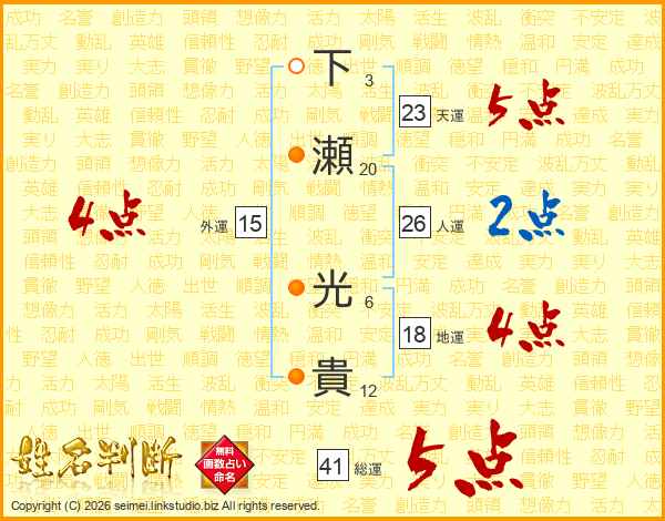 下瀬光貴さんの総運は41画の5点!