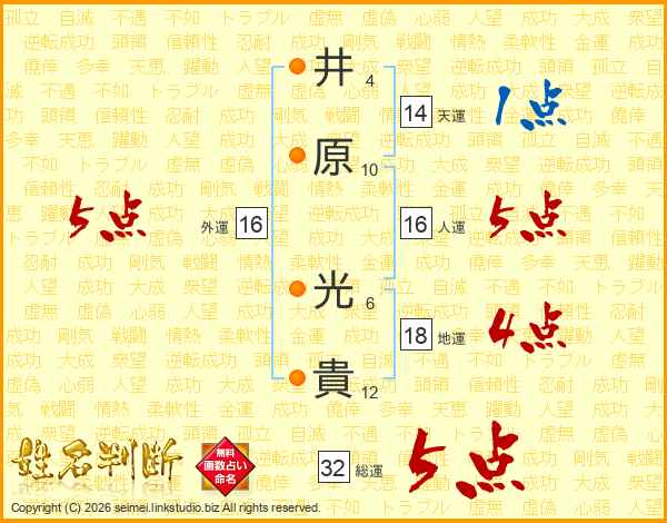 井原光貴さんの天運は14画の1点!