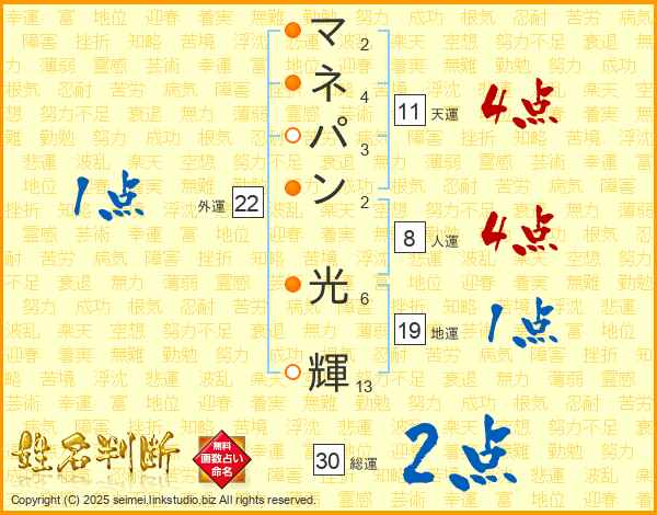マネパン光輝さんの天運は11画の4点!